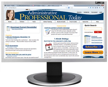 Extra Added Bonus: You'll also receive one month of members-only access to AdminProToday.com. This career-boosting website gives you tips on how to succeed in your job – and in your career – offering daily tips, helpful tools, and thousands of informative articles. So that you continue to benefit from AdminProToday.com, we'll continue your members-only access for just $59 per quarter, unless you tell us "no, thanks" – your choice. |